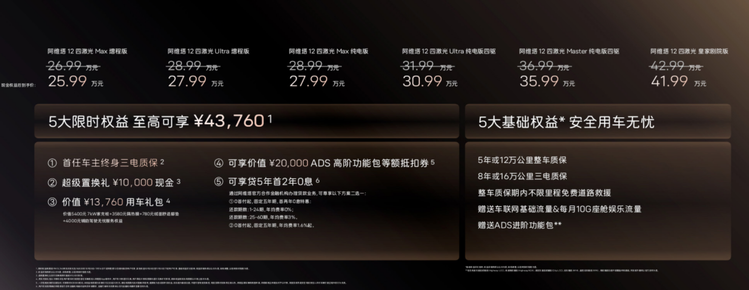 阿维塔12四激光版的上市,不仅是一款新车的发布,更是智能汽车市场"普惠时代"的开端。当其他品牌还在把激光雷达当"高端配置"漫天要价时,阿维塔直接将其纳入全系标配,这份底气源于华为六年技术共研的沉淀,更藏着对消费者需求的深刻洞察——智能不该是奢侈品,而应是每一位车主都能享有的安全保障。