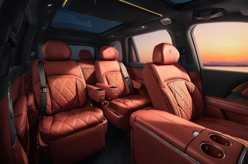 座椅设计同样延续东方美学基因。头枕处首次应用刺绣版岚图LOGO,与山水意境孔纹形成呼应,于细节处彰显豪华质感。岚图汽车卢放表示:“岚图不仅造好车,更坚持原创,将中式美学智慧融入产品,让世界看见中国品牌的浪漫与自信。”这种对中式美学的深度传承,使岚图泰山座舱超越单纯的功能空间,成为承载东方生活哲学的移动艺术品。