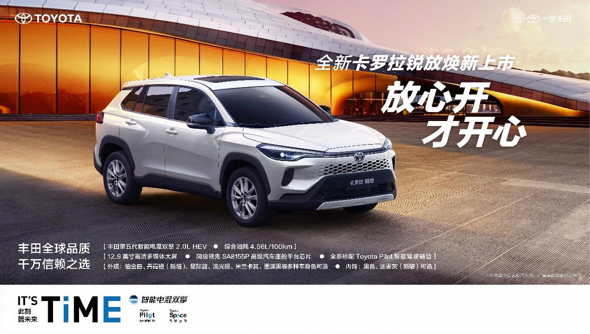 10月28日,一汽丰田正式推出全新卡罗拉锐放,其以“世界丰田,中国锐放”为核心主题,全面展示其在外观、智能、安全、空间等方面的焕新升级。新车共推出2.0L汽油版与2.0L智能电混双擎版两种动力、共6款配置,官方指导价区间为12.68万元—15.98万元,并推出限时“锐意绽放价”,低至9.68万元起,市场竞争力显著提升。