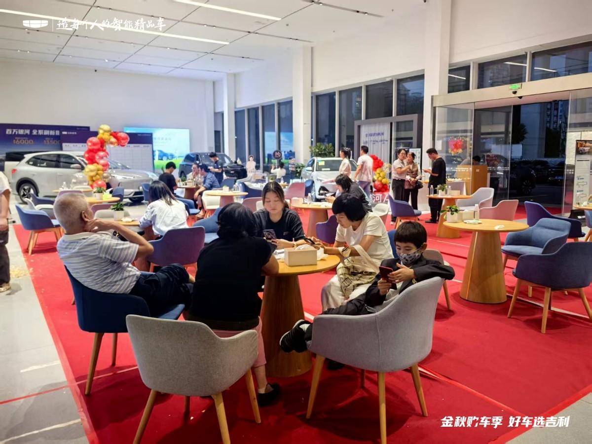盛况空前的团购会 —— 团购会期间,吉利汽车上海华庭4S店内热闹非凡。展厅内人流如潮,咨询、试驾、洽谈购车事宜,场面火爆。各款车型整齐排列,吸引着客户的目光,充分展现了吉利汽车的强大吸引力和品牌魅力。