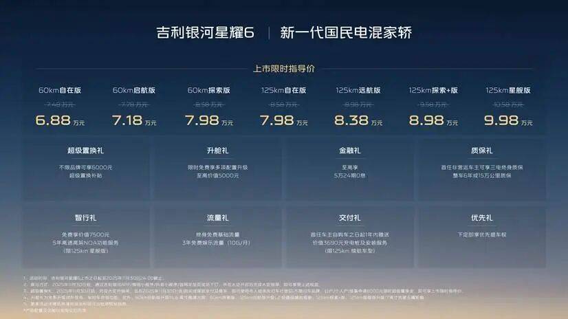 新一代国民电混家轿吉利银河星耀6全球上市,限时6.88万元起