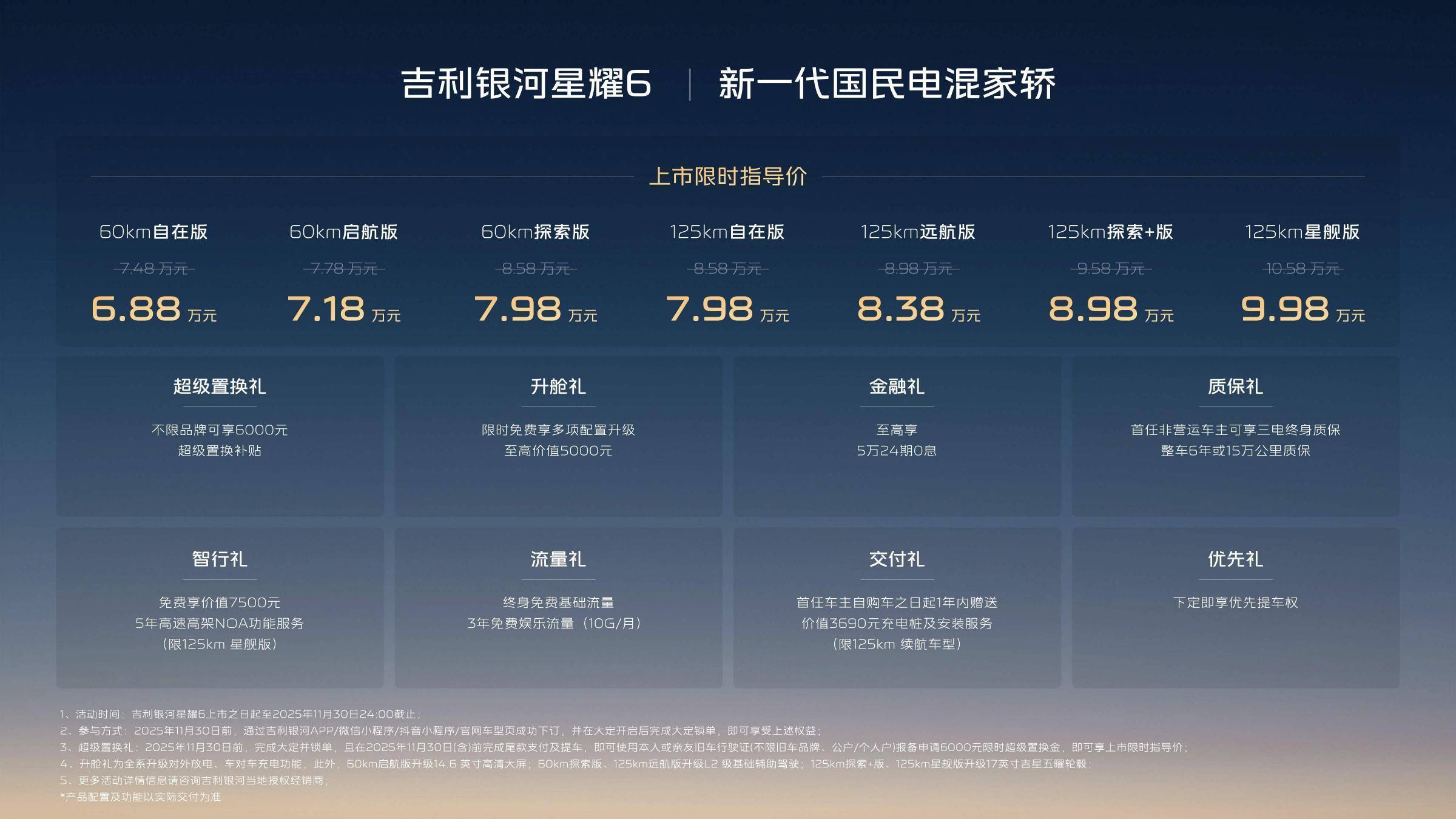 新一代国民电混家轿吉利银河星耀6全球上市,限时6.88万元起