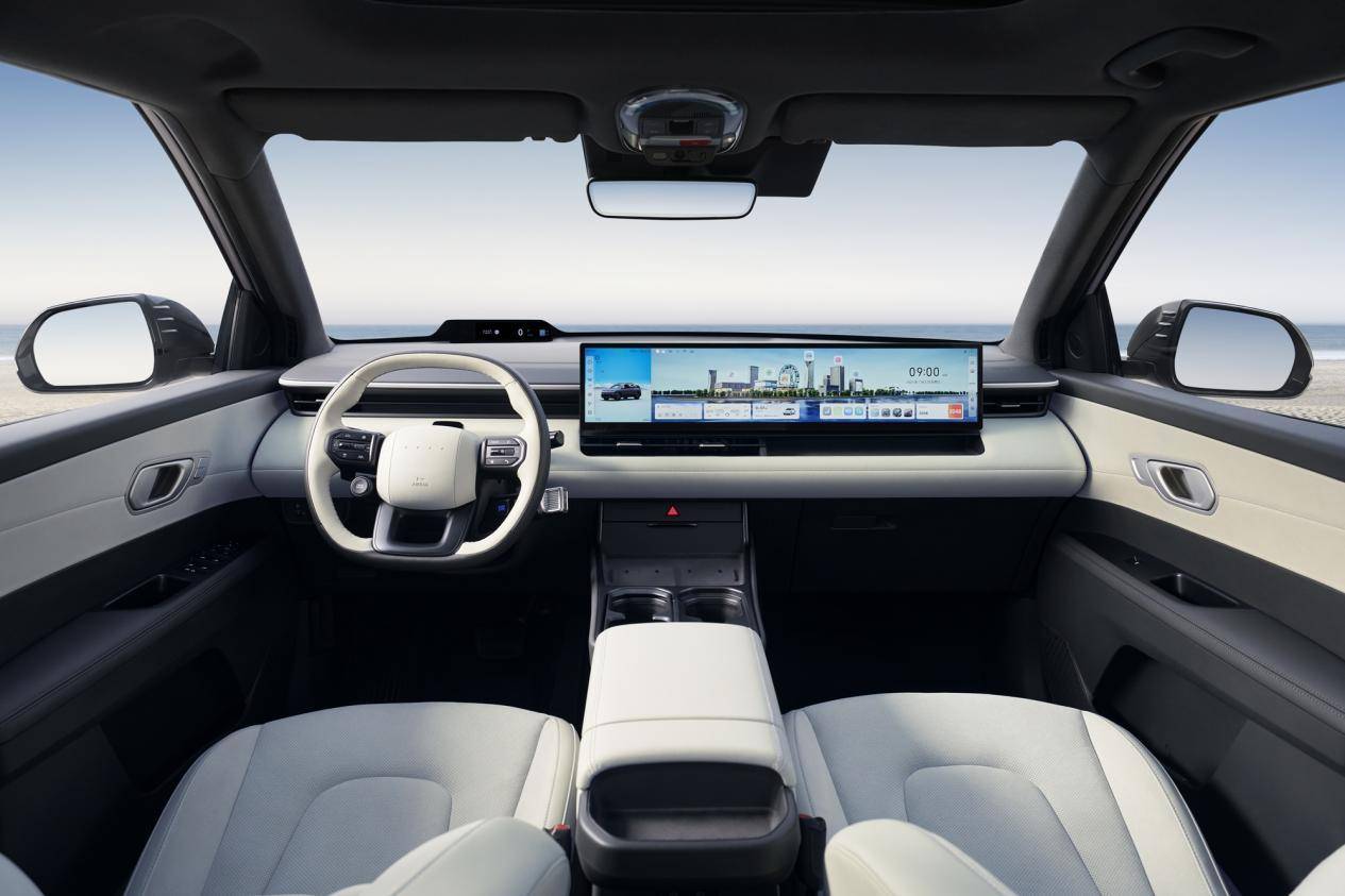 内饰方面,北京现代EO羿欧以全新设计语言打造出极具未来感的驾乘空间,整体布局简洁明快,更贴近新势力车型的科技风格,全系标配27英寸一体式悬浮双联屏,搭配“赛博之眼”前投影显示系统,可将行车信息清晰投射至前挡风玻璃下沿的黑区区域,并支持常规、极简与地图三种显示模式自由切换。