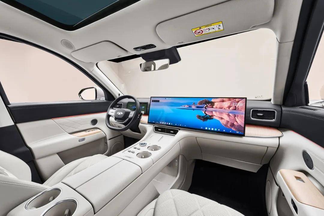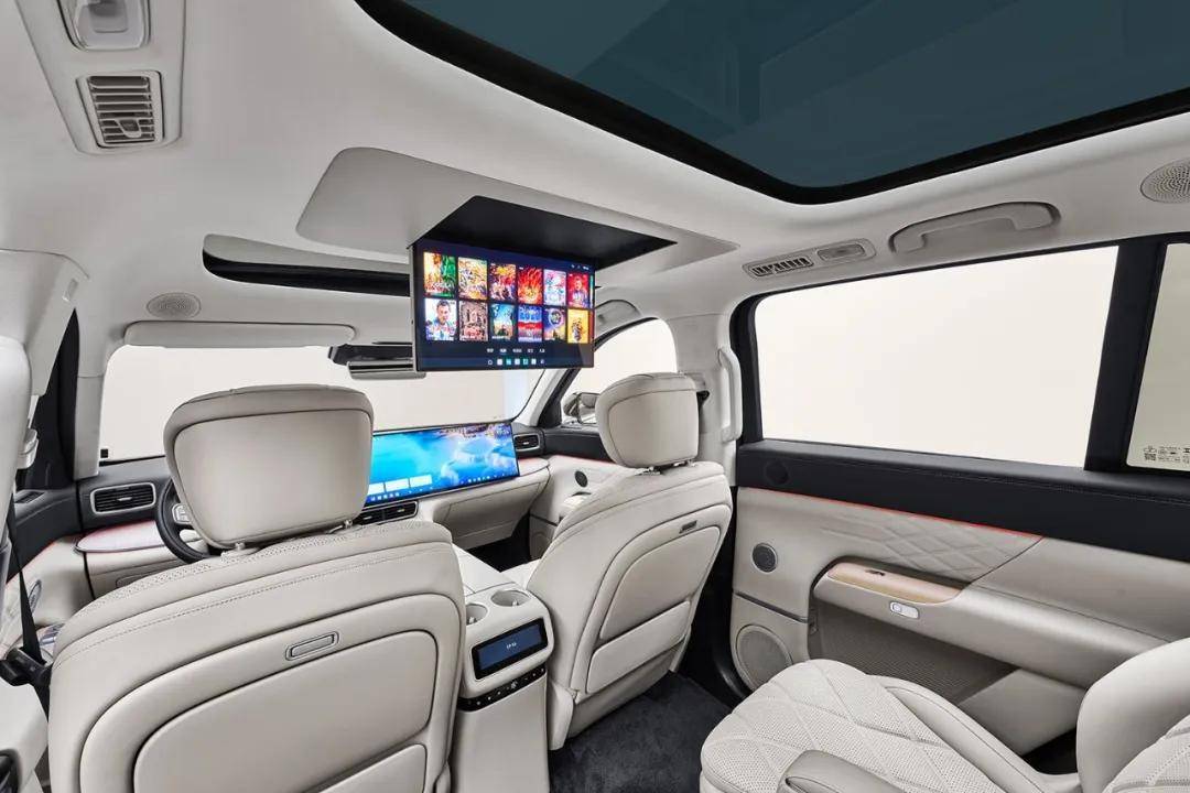 此外后排还搭载了17.3英寸的后舱娱乐屏,搭配伯牙之音 23 扬豪华音响系统,打造移动的视听盛宴。车内还搭载了9.2L的宽温域智能冷暖冰箱,支持APP远程控制和电动开合带防夹。