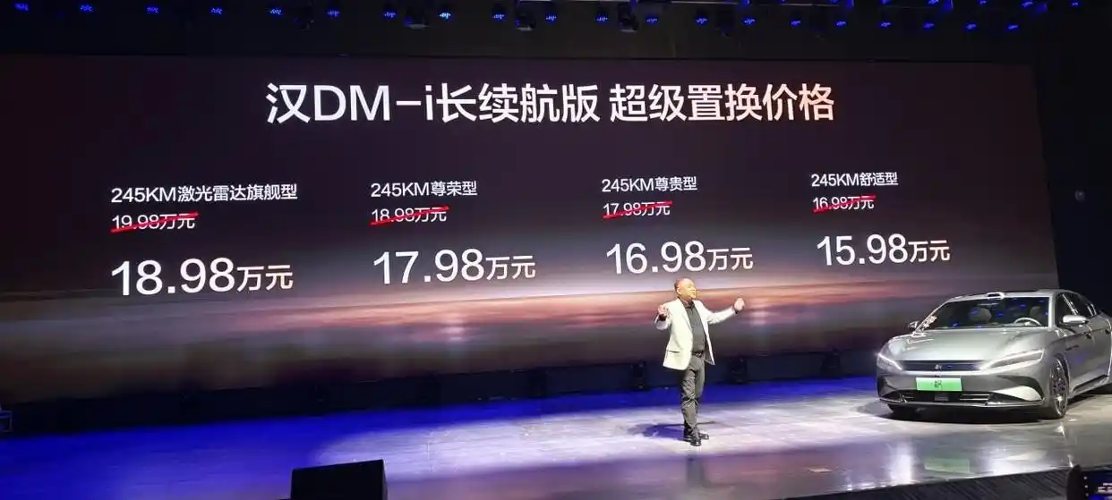 作为国内C级轿车的顶流,比亚迪汉家族持续热销。而在前段时间,比亚迪汉DM-i长续航版和汉EV长续航版正式推出,并且在成都上市。其中,汉DM-i长续航版共推出4个版型,超级置换价区间为15.98万-18.98万元,汉EV长续航版则推出3个版型,超级置换价区间为17.38万-20.58万元。