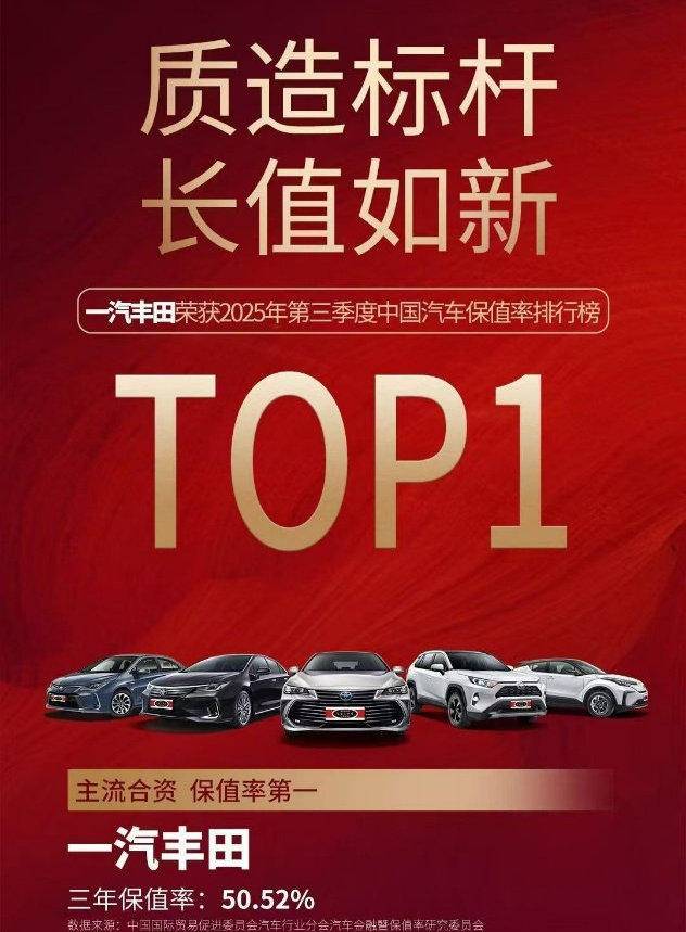 长期主义展示在一汽丰田在产品可靠性等关键领域下足了功夫,就如马拉松大赛对保障用车的首先要求就是要绝对安全可靠。成立22年来,一汽丰田始终坚守“品质保障”的金字招牌,将对品质的严苛管理注入每一个生产环节,不仅保证不良产品“不流向用户”,更严苛到不流入“下一个工序”。也因此,一汽丰田的每一款车都自带高品质、高耐久性、高可靠性的QDR属性,成为用户跨越时间周期的品质之选,并保持着极高的保值率,在贸促会汽车分会发布的2025第三季度汽车保值率排行榜中,一汽丰田以三年保值率50.52%的成绩,荣膺主流合资品牌第一名。
