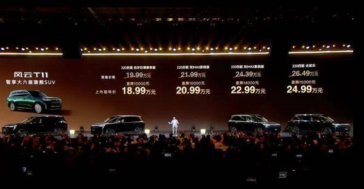 奇瑞也开始进军全尺寸SUV市场,就在10月30日,奇瑞风云T11正式上市,新车定位全尺寸6座SUV,采用1.5T增程系统,CLTC综合续航1400公里,此次推出4款车型,售价18.99-24.99万元,限时置换价17.99-23.99万元。