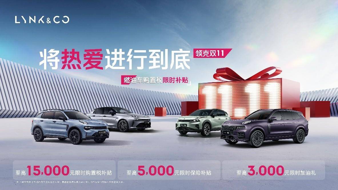 为特别感谢用户对燃油车的热爱,领克推出限时补贴权益:凡在2025年11月30日(含)下订领克燃油家族任一版型并完成提车的用户,领克将提供至高15,000元购置税补贴,至高5,000元保险补贴,至高3,000元加油礼遇。