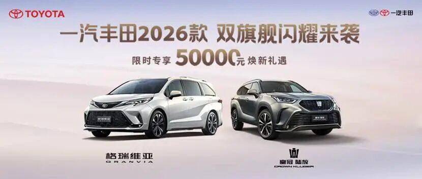 10月焕新的2026款格瑞维亚致力于“从我们的家到更好的家”,新增尊爵MAX四驱版,提升了复杂路况通过能力和长途舒适性,能从容应对出行的多种场景,更安全、更稳定、更舒适。在豪华质感层面,2026款格瑞维亚两驱尊爵以上版本新增NAPPA真皮和缎奢驼专属内饰,从视觉到触感,打造更高级质感。而尊贵版及以上(除旗舰版外)车型均实现了“增配不增价”,价值优势进一步凸显。值得一提的是,2026款皇冠陆放和2026款格瑞维亚双车均享受综合权益价值5万元的权益,让用户轻松开启高品质美好出行。
