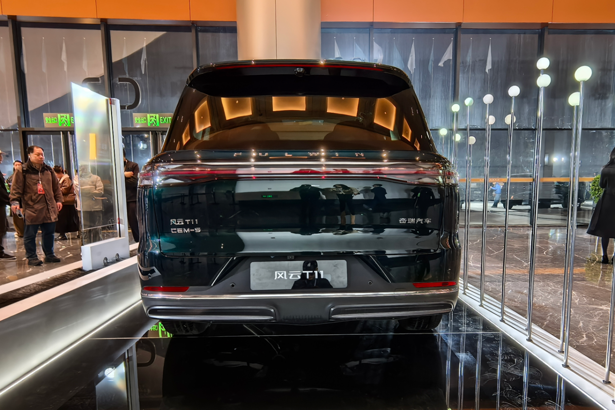 最后在车尾位置,风云T11的尾部型面显得颇为简洁,在展现大气的同时,其贯穿式尾灯也带来了精致的观感。这款车的尾灯内部采用菱形纹理设计,精致灯腔与简洁型面搭配,也让风云T11的车尾姿态更具立体感。