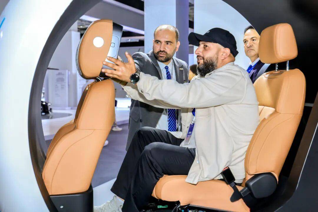 图为外国嘉宾体验奇瑞技术展品