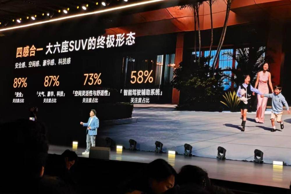 为什么要把风云T11造成这样,奇瑞是有严谨的数据调研基础作支撑的。在前期的用户调研中,用户对于大六座SUV的关注点集中在“安全感、豪华感、空间感、科技感”的四感合一,其中对安全的关注度占比高达89%,豪华感占87%,空间灵活性与舒适性占73%,而用户对智能驾驶辅助系统的关注度占比为58%。