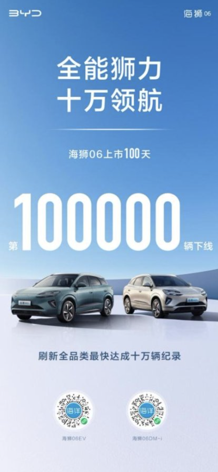 10月31日,比亚迪海洋网旗下“高能超享SUV”海狮06上市满百天之际,第十万辆整车正式下线,不仅刷新全品类车型最快达成十万辆的纪录,更以“海狮速度”重新定义了爆款车型的成长逻辑。