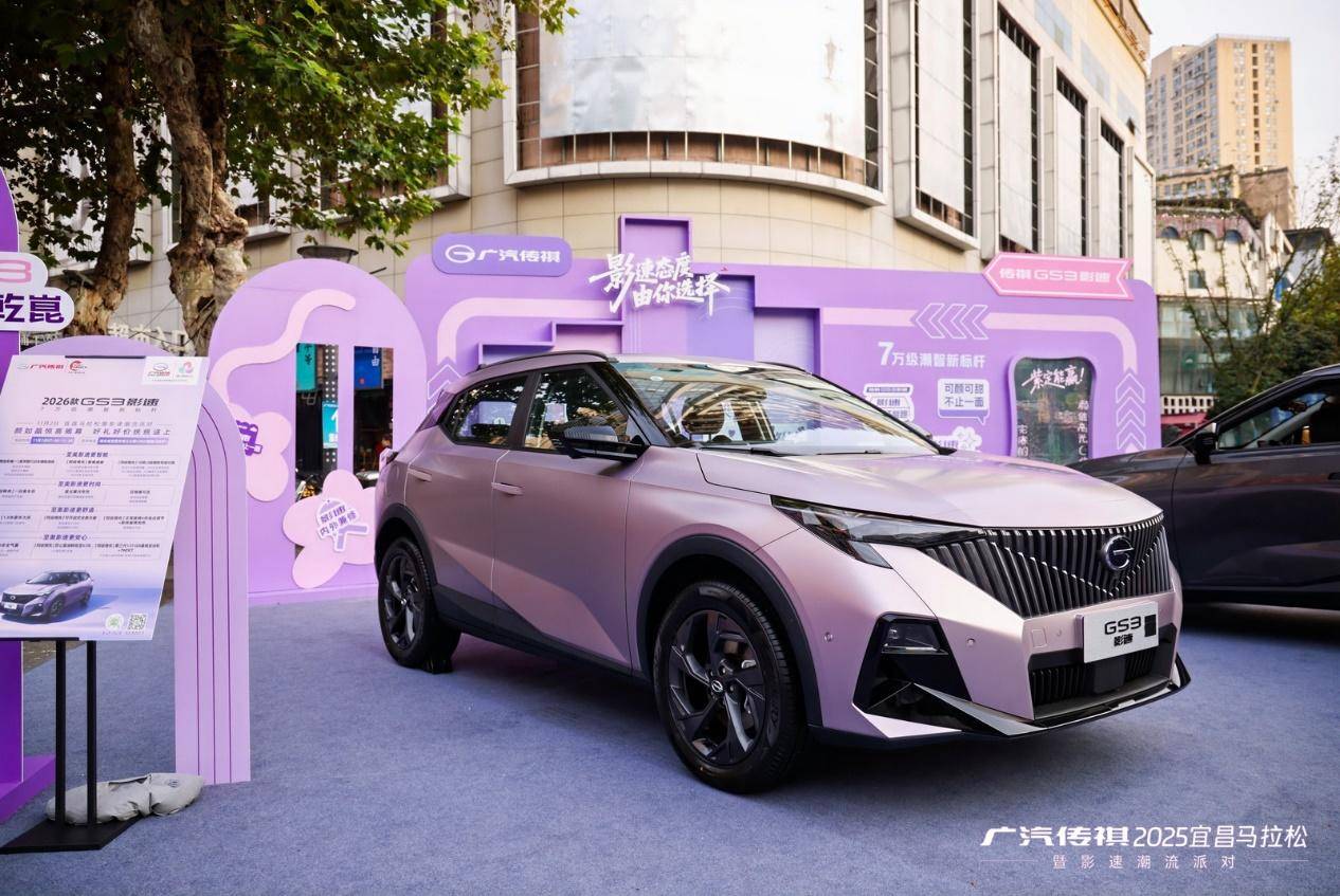 在广汽传祺2025宜昌马拉松博览会及赛道上,2026款传祺GS3影速布置了多个潮智展区,以多维度、沉浸式的体验场景,为运动赛场注入了年轻的潮流时尚的元素。
