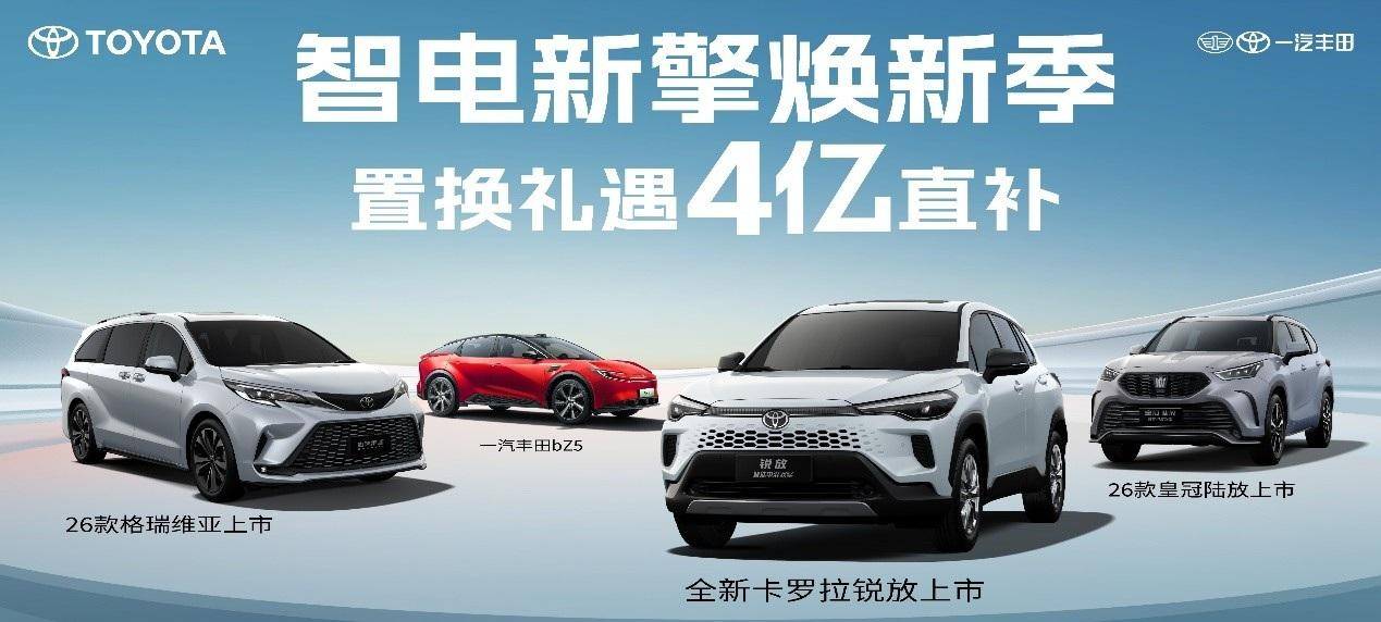 除了产品焕新,一汽丰田年末的用户回馈同样重磅。11 月 1 日至 12 月 31 日,品牌启动 “智电新擎焕新季”,拿出 4 亿元厂家直补。皇冠陆放、格瑞维亚、普拉多等车型可享至高 1.3 万元车龄增值礼,购全新 bZ5 有专属限时福利,还有电商礼、老友礼、服务礼等多重优惠,比如双十一期间购车并当月交付,可获智能手表与户外露营帐篷,全国限量 1111 套,实实在在为用户创造购车好时机。