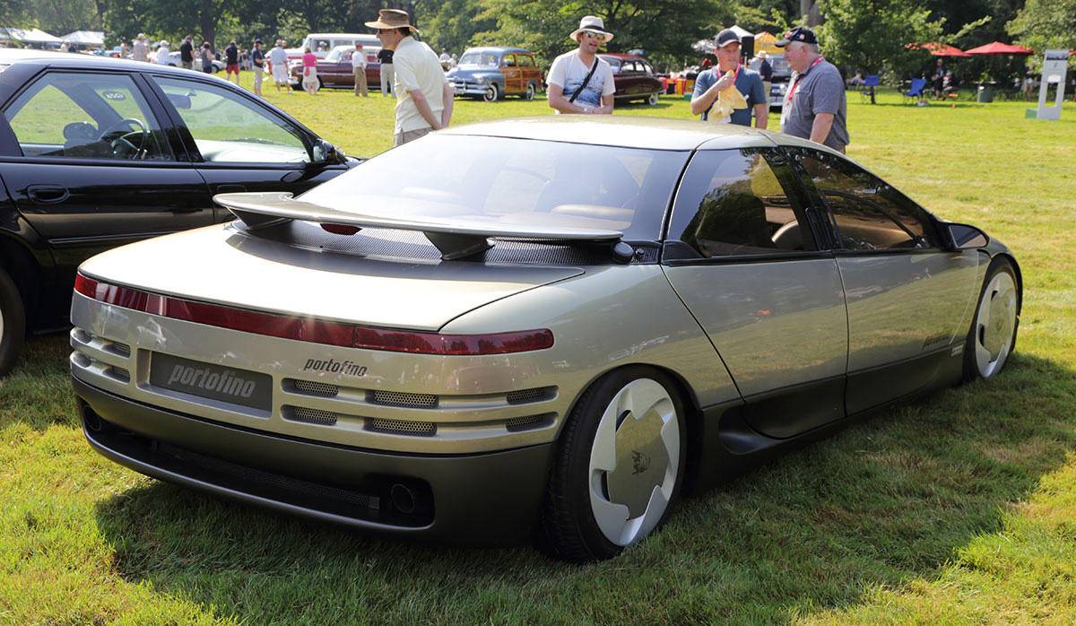 兰博基尼Portofino是一辆概念车,由克莱斯勒首席设计师之一凯文·弗杜因开发,于1987年法兰克福车展上首次亮相,它是一辆完全可以运行的四门四座运动轿车。这款车的诞生背景颇具戏剧性,1986年,弗杜因为克莱斯勒设计了一款名为Navajo的概念车模型,但该项目从未超越黏土模型阶段。1987年4月23日,当克莱斯勒收购了兰博基尼后,这个设计被重新启用,经过一些相当小的调整,变成了Portofino。