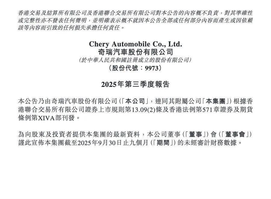 【文/财圈社&道哥说车 麻建宇】10月31日,奇瑞汽车发布2025年第三季度财报。严格意义上来说,这也是奇瑞在获取上市公司身份后的第一份季度财报。令人没想到的是,奇瑞汽车还挺能赚的……