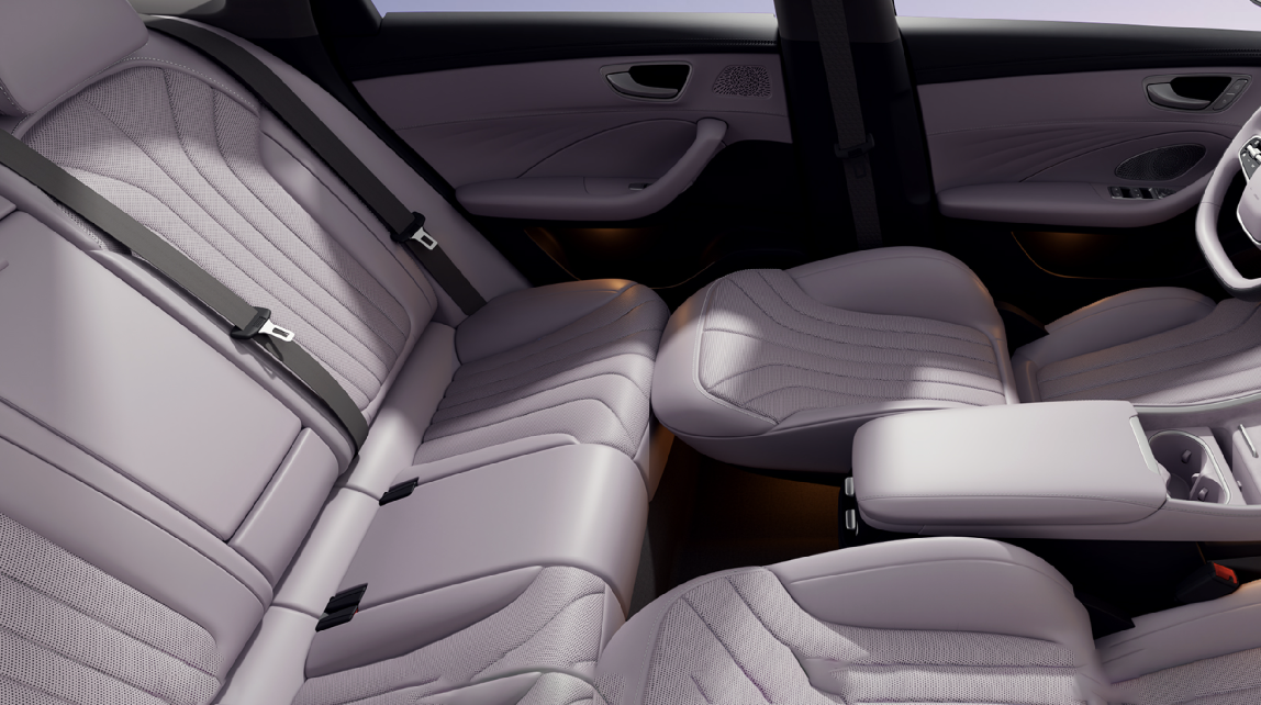 首先,家人都想要有大空间,荣威M7 DMH拥有2820mm的B级车轴距,为后排带来了奢华的腿部空间。即使全家出行,后排的家人也能轻松翘起二郎腿,配合几乎纯平的地台,中间位置的乘客也能获得尊严十足的坐姿。充裕的头部空间则避免了压抑感,让整个座舱开阔而通透。