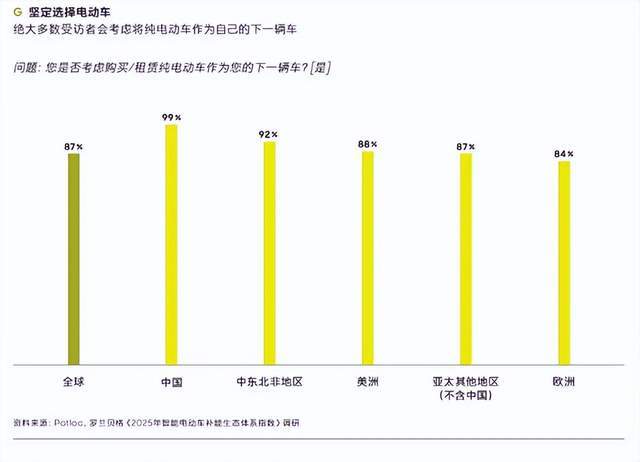 全球咨询公司罗兰贝格发布的《2025年智能电动车补能生态体系指数》显示,99%的中国纯电动车用户表示下一辆车仍会考虑纯电动车。