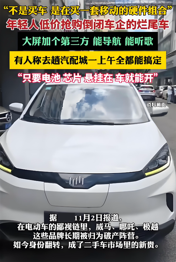 理论上在一家车企破产之后,该品牌的所有产品保值率都已无从谈起;售后、质保也成了空头支票;这样的汽车产品总是令人望而却步的,但是却有人说这些“烂尾车”成为了年轻人的新宠。