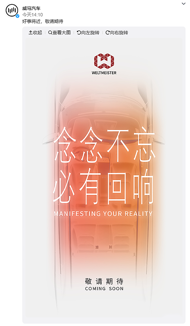 威马汽车品牌方账号发布一则新动态,内容如下: