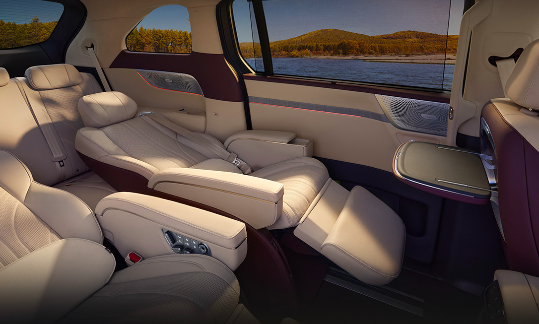 在舒适性上,同级最舒适的二排零重力座椅,全粒面Nappa真皮包裹,新增腿托加热+座椅填充加厚,并支持靠背180°放平,都能有效减少压力和疲劳感。