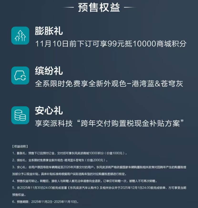 在 15 万级新能源轿跑市场,“性价比” 与 “高端配置” 向来难以两全,但东风奕派 eπ007+ 的预售,似乎要打破这一惯例。11 月 2 日开启预售的这款智美超能轿跑,以 14.99 万元起的定价,带出增程、纯电双动力选择,更甩出 “全系标配激光雷达” 的王炸,再加上三重预售权益加持,刚亮相就把同级竞品的压力拉满。
