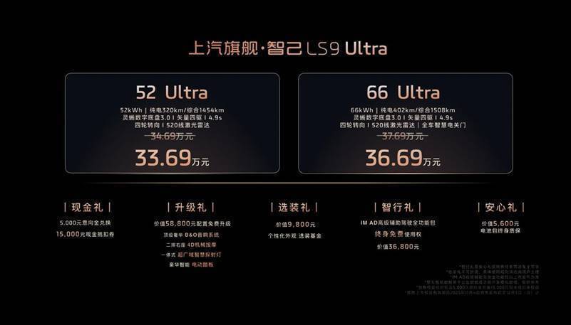 11月4日,上汽旗舰·智己LS9全球首发并正式开启预售。新车重磅首发两个超级增程版本,全系皆Ultra:52 Ultra版,预售权益价33.69万元;66 Ultra版,预售权益价36.69万元。作为汇聚上汽集团70年造车底蕴,集全球顶尖技术打造的旗舰之作,智己LS9以“两大跨代际硬核科技+两大智能时代最强创新”的绝对实力,一举颠覆30万级大六座SUV市场格局,正式宣告9系新王诞生!