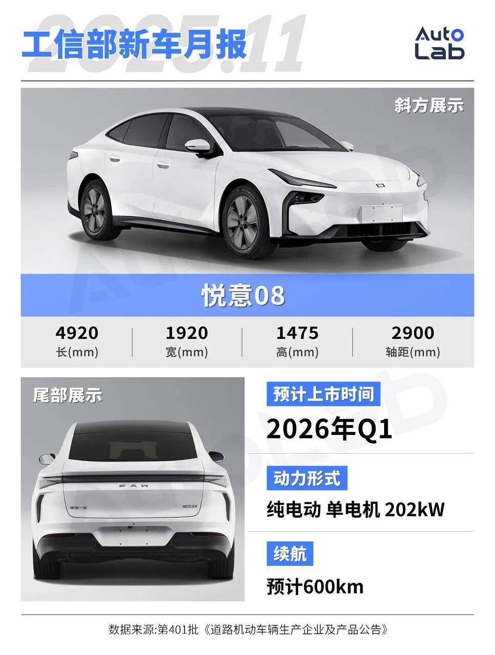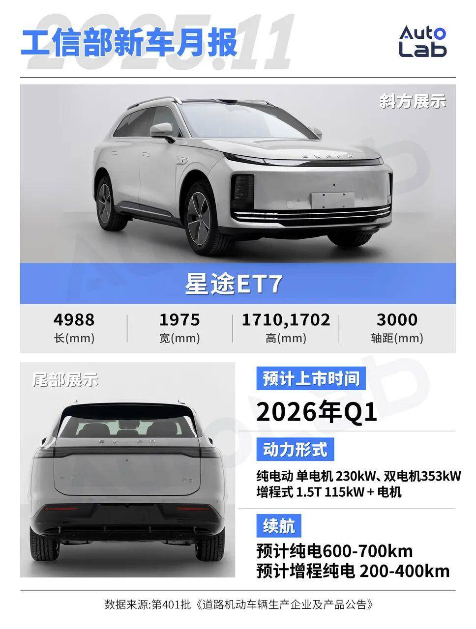 在动力方面,新车将提供纯电与增程两种动力,目前只申报了纯电版本,搭载了一台最大功率202千瓦的电机。