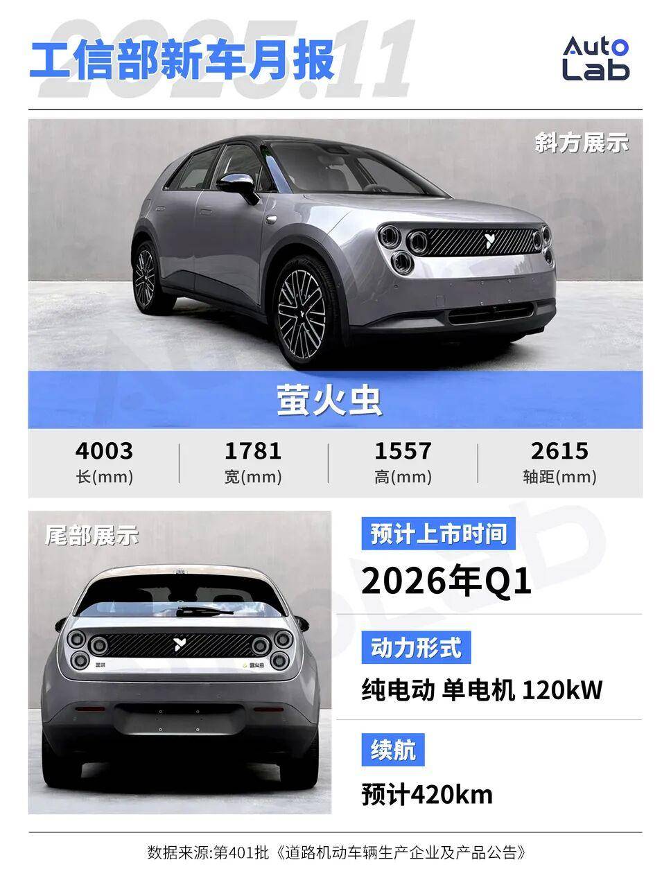 萤火虫本月申报了一个高功率版本,电机功率从105kW来到了120kW,或许是在为大电池的长续航版本做准备。