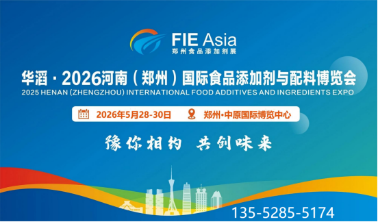 FIE Asia华滔·2026第二届郑州食品添加剂与配料博览会,2026年5月28-30日将在郑州中原国际博览中心举办,吸纳优秀的食品添加与配料产行业上下游产业品牌商,汇聚前沿食品添加剂与配料行业一站式采购解决方案,中国食品添加剂与配料行业年度盛会!