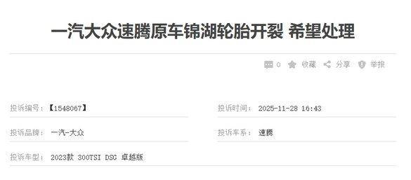 探岳:投诉问题与速腾基本一致,同样涉及轮胎质量和变速器系统故障。两款主力车型同时暴露出共性问题,反映出一汽大众在零部件采购或品控环节可能存在漏洞,需要引起厂家高度重视并开展专项排查。