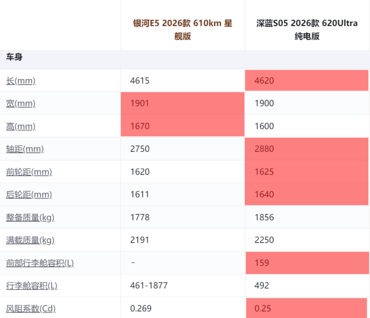 为了详细对比,咱们选择银河E5的2026款610公里星舰版,深蓝S05则选择2026款620Ultra纯电版,开始今天的横评。