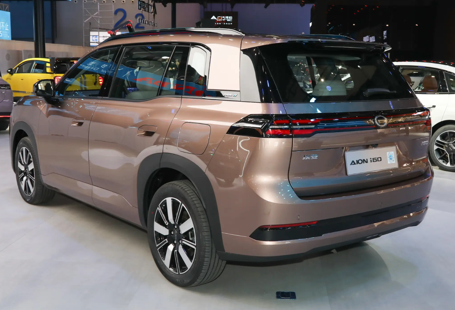 先来看外观,埃安的i60用了完全不同的命名方式,所以它的设计和之前的很多埃安车型也是不太一样的,甚至能够看到一些传祺车型的影子。外观整体走的是四方四正的设计,甚至尾部的D柱也没有过分的向前倾,这就使得它的内部空间表现要更好一些,尤其是后备箱的空间。而且在标志上是不太一样的,纯电动版本使用的是字母标,而增程版则是广汽的G字标。