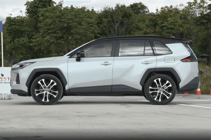 车身侧面更有看头,引擎盖棱线凸起,轮拱往外扩,力量感十足,还有个Y字型腰线,据说灵感来自电动陆巡概念车,整车姿态特别动感。车尾部分,钢琴琴键式尾灯辨识度超高,下护板是铁灰色竖状条纹,这可是丰田最新设计元素,雷克萨斯和卡罗拉概念车上都能见到。尾灯没跟风搞贯穿式,中间留了块黑色饰板,上面印着威兰达的英文字母,还有个低调的黑色丰田标,不仔细瞅都发现不了!