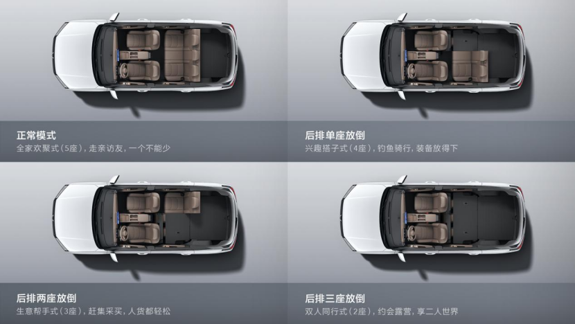 同时,整车还具备“忙时好装、闲时能躺”的灵活性,这得益于其双层后备厢设计——184L隐藏下沉空间加763L常规容积,整体可达947L。将后排座椅放倒后,后备厢最大能扩展至1945L容积,井然有序容纳所有出行装备。还有超大尾门开口,门槛低,洞口宽,更有利于放置大件物品。