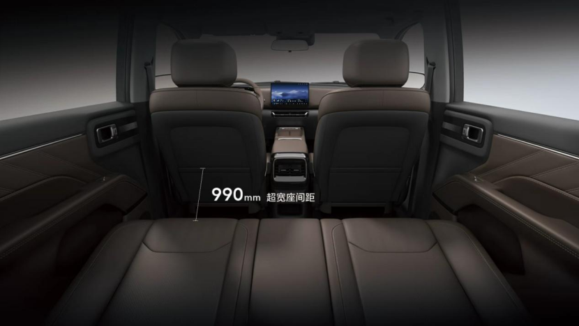 车内空间布局尤为考究:内部有效车长达3202mm,后排1463mm超宽体设计,确保三人同坐依然舒展;前后排座间距达990mm,身高1米8的乘