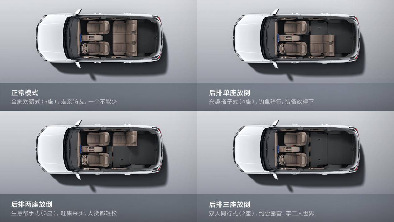 同时,整车还具备“忙时好装、闲时能躺”的灵活性,这得益于其双层后备厢设计——184L隐藏下沉空间加763L常规容积,整体可达947L。将后排座椅放倒后,后备厢最大能扩展至1945L容积,井然有序容纳所有出行装备。还有超大尾门开口,门槛低,洞口宽,更有利于放置大件物品。