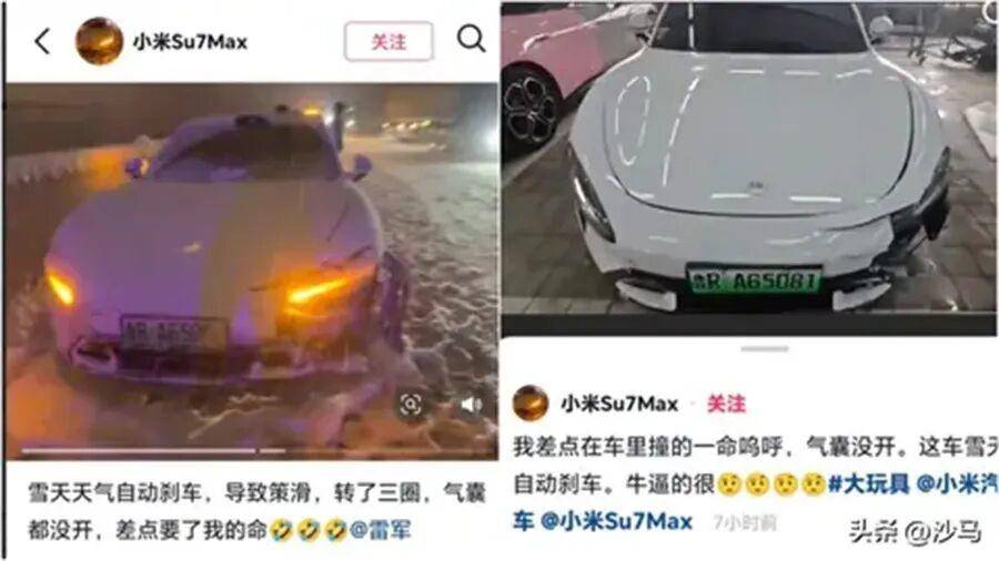 就在此次杭州园区事故的两天前,12月13日,一起发生在山东雪天高速公路上的事故,已让小米汽车的智能安全系统陷入质疑。一辆小米SU7 Max在时速约70公里、前后无车的状态下,自动紧急制动(AEB)系统突然无端触发,导致车辆侧滑旋转并撞向护栏。更令人心惊的是,在剧烈的碰撞中,车辆的安全气囊并未弹出。这起事件直接将矛头指向了智能驾驶核心安全系统的可靠性与车辆被动安全的有效性。