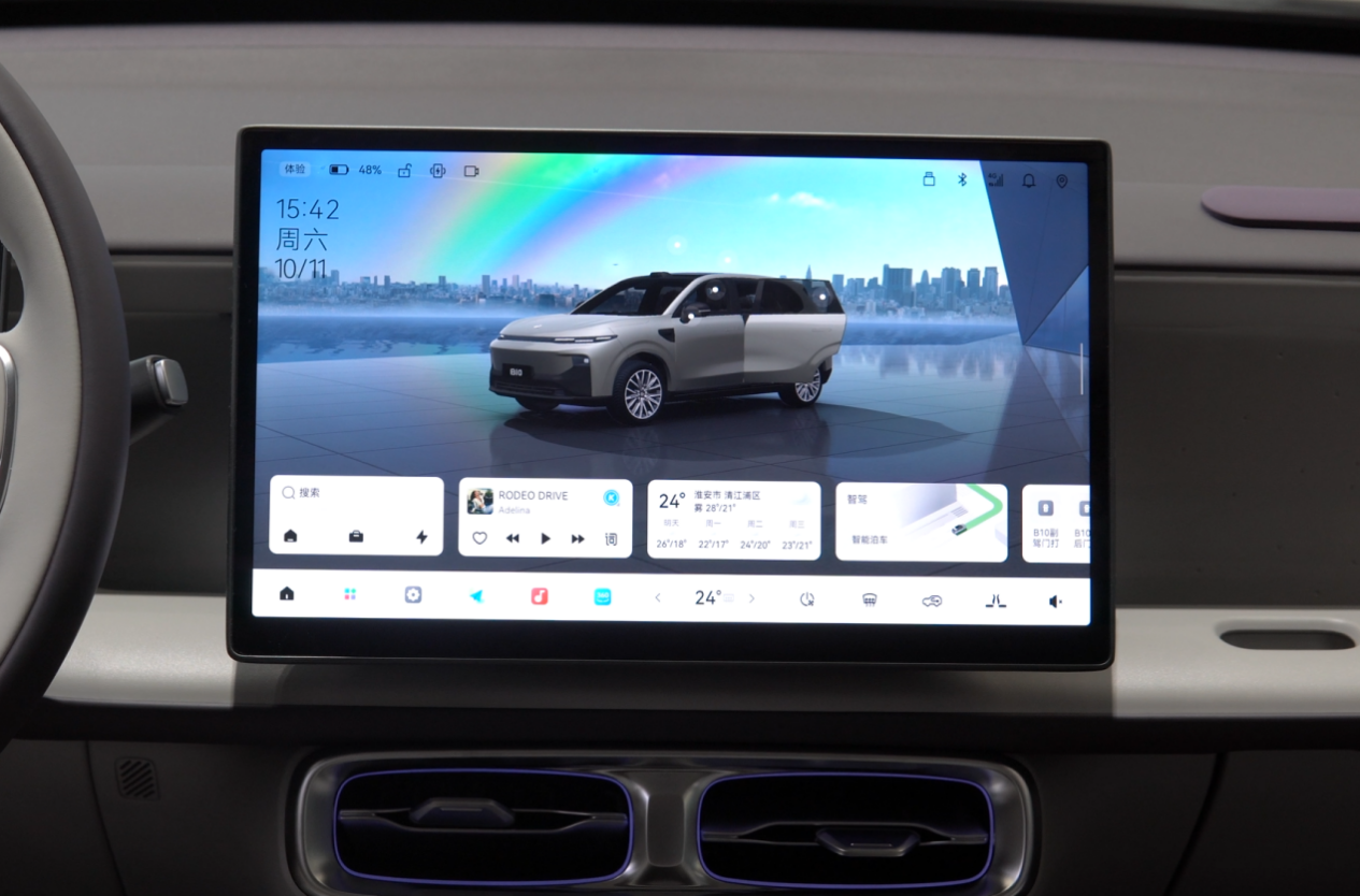 零跑B10中控台搭载一款14.6英寸2.5K屏,内部涵盖丰富的影音娱乐功能,UI界面显示清晰、触控操作丝滑。当很多车型只采用高通骁龙8155芯片时,零跑B10则搭载的是8295芯片,AI算力达到30TOPS,相比8155 CPU提升2倍,GPU提升3倍,3D渲染能力更强,因此在日常触控操作时,切换各类三方APP会更丝滑,也让整套Leapmotor OS 4.0 Plus系统拥有更好的用车体验。