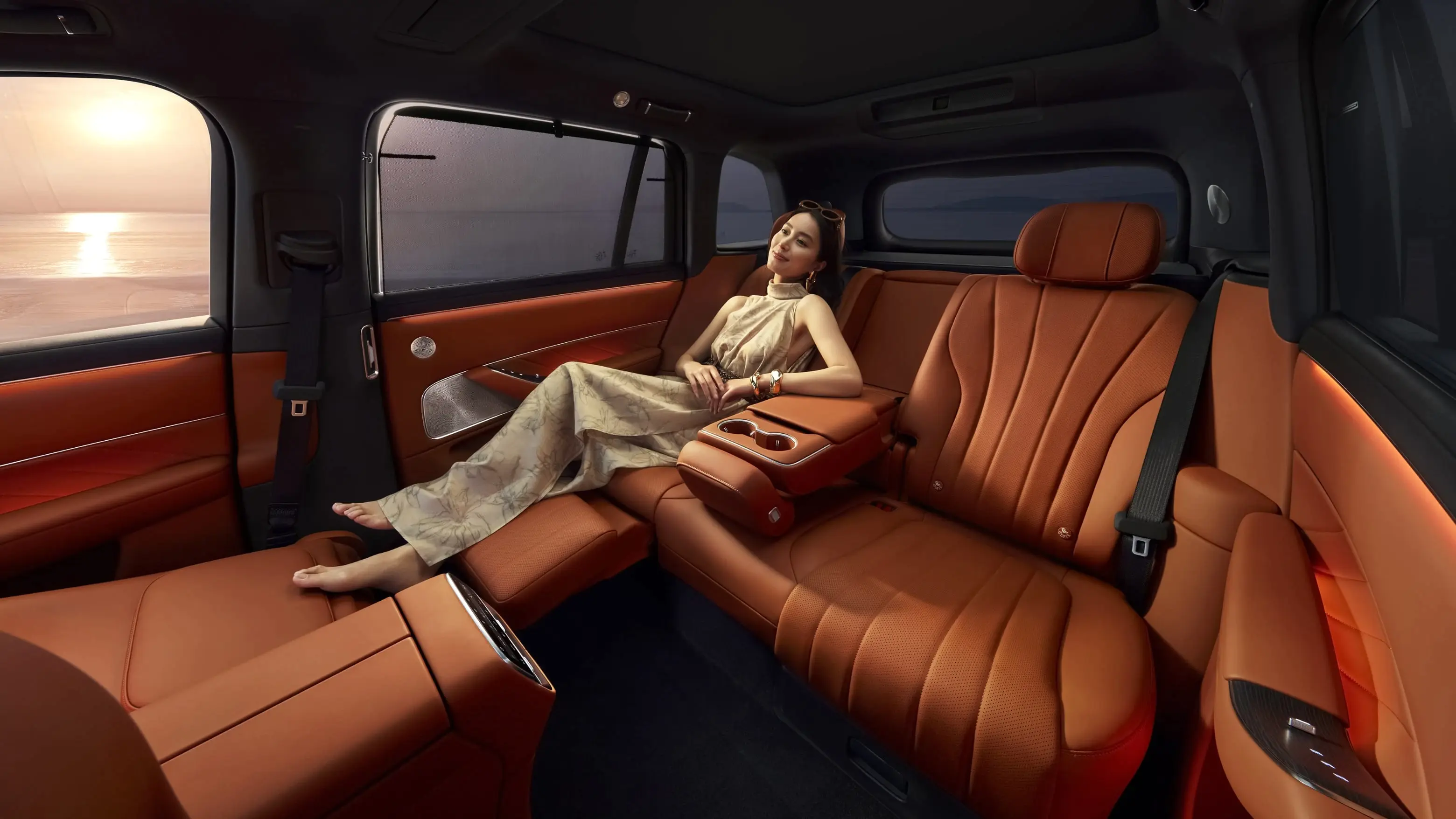 为了让用户乘车尽显舒适与豪华,问界M8还全车配备Nappa真皮包裹的座椅,并同时具备加热、通风、按摩、电动调节等功能,不仅触感细腻舒适,包裹感与柔软度也非常到位,坐入其中仿若身处“大沙发”。此外,位于六座版车型第二排右侧的零重力座椅还支持一键展开,配合行业首创水平自适应扶手功能,可在长途旅行中能为家人提供媲美头等舱的休息体验。如果旅途中后排乘客有娱乐需求,问界M8在后排还配备32英寸升降式投影幕布,加之HUAWEI SOUND音响系统,可带来影院级观影体验,长时间乘车从此不再无聊。