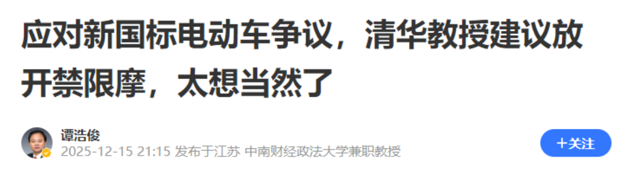 摩托车至今也还是低收入人群的重要交通工具之一,是与电动自行车角色类似的交通工具;禁限摩禁的看似是摩托车,实际是通过地方法规限制了这一部分人群的出行选择权!如果说这些禁限摩城市里没有低收入人群则可以禁限摩,但是可能吗?所以在笔者看来,谭俊浩教授的想法才是过于想当然了,而且对李稻葵教授的评价也是略显“WJ风格”喽,动不动就是西方的那一套?这样的评价实在是令人难以接受。