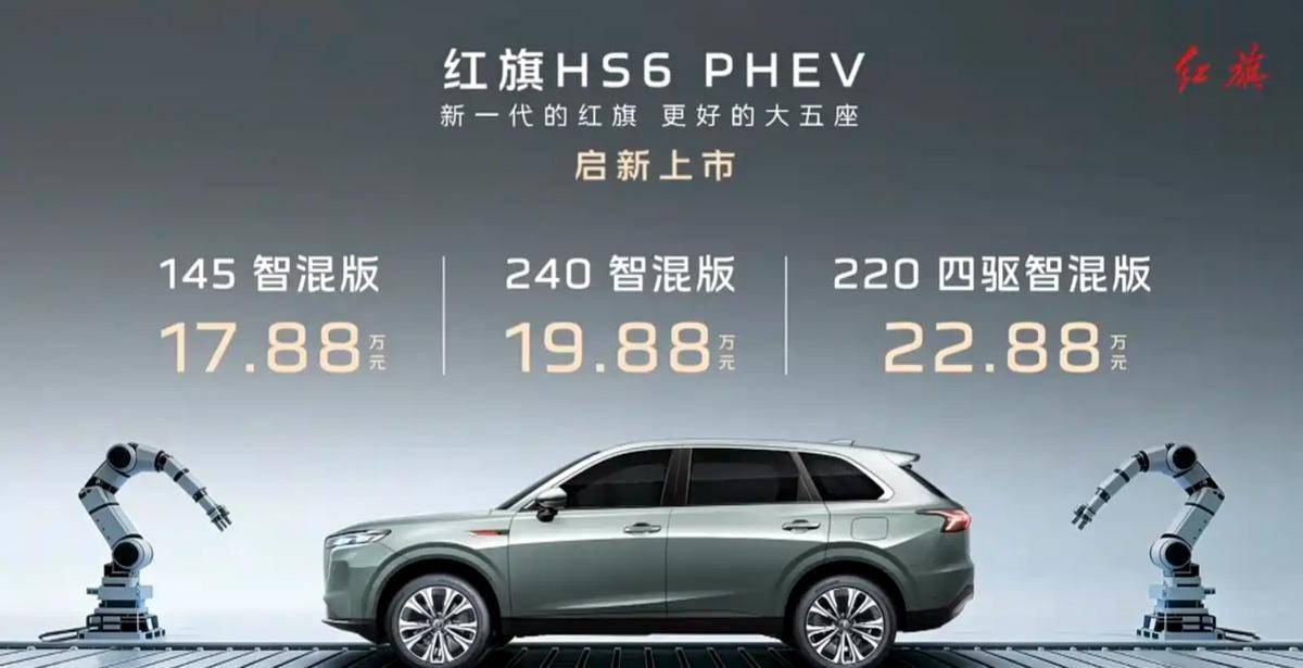 就在今天(12月16日),一汽红旗全新插混中大型SUV——红旗HS6 PHEV正式上市,共推出3款车型,售价区间为17.88-22.88万元,另外上市期间还提供六项上市权益。很显然,红旗已经开始走“亲民”路线,不再是那个让人觉得有距离感的“国车”形象。