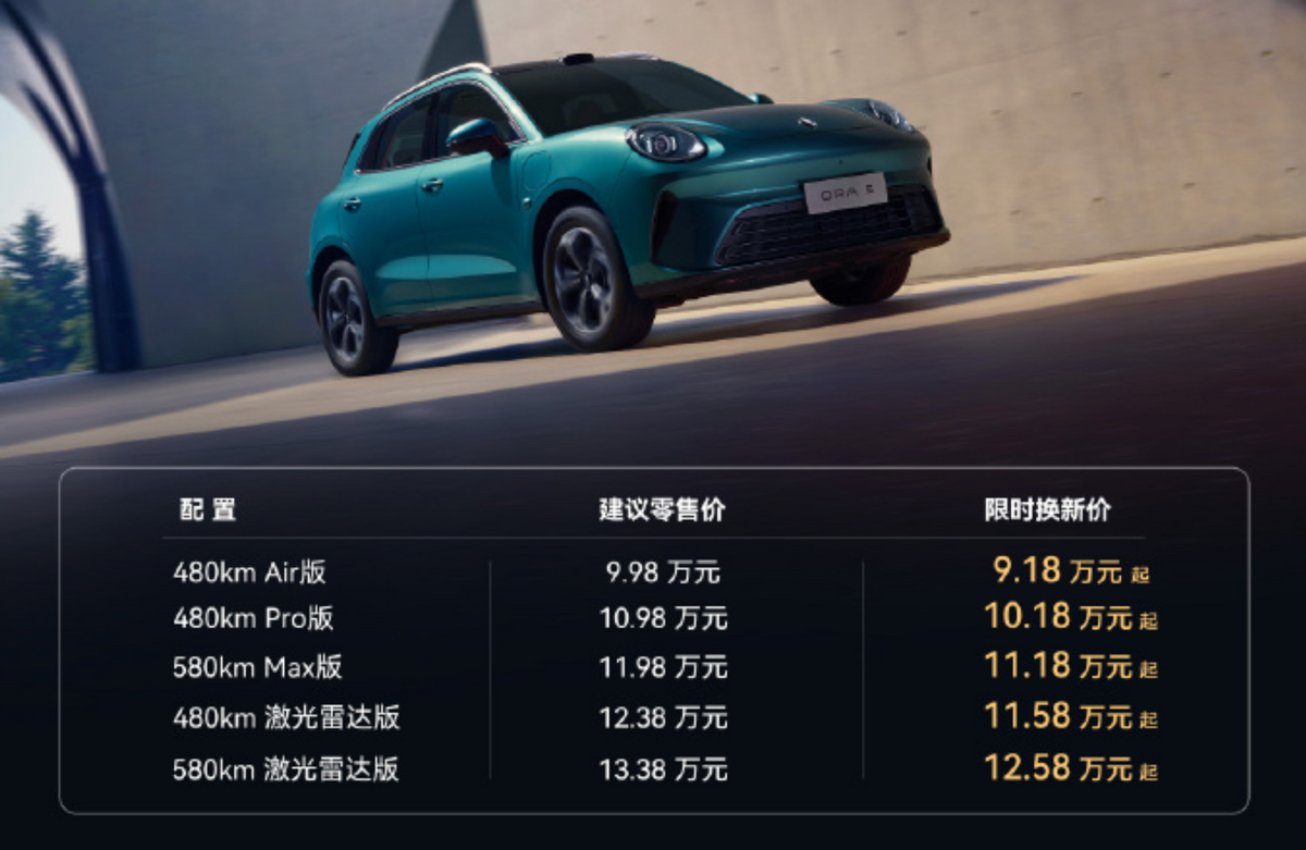 12月16日,欧拉5上市,售价:9.98万元-13.38万元,限时换新价:9.18万元-12.58万元。