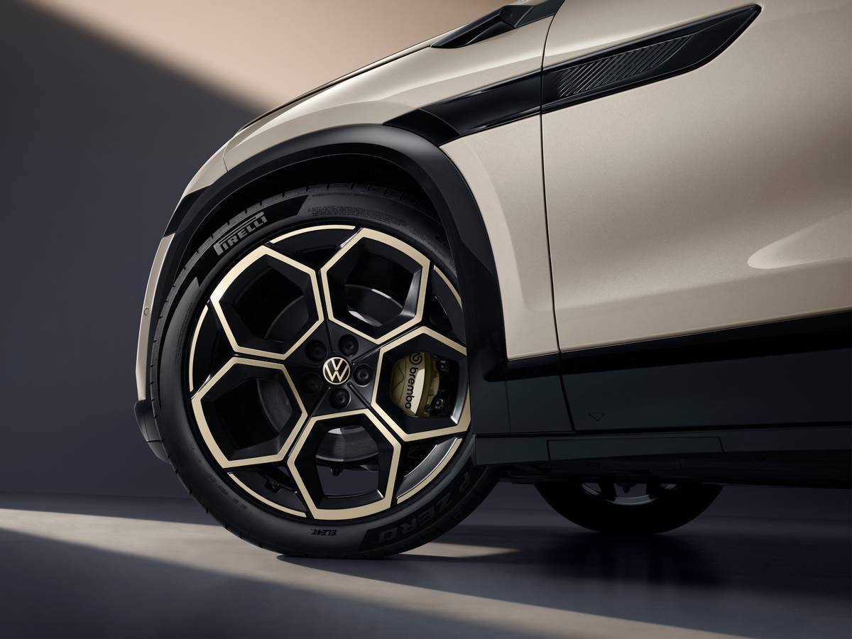 21英寸轮毂的设计灵感,可追溯至 1970年世界杯首次启用的黑白经典足球。其表面交织的五边形与六边形几何结构,不仅是足球运动的标志性符号,亦成为跨越文化、连接记忆的情感载体。设计团队以此为起点,通过精准的型面处理与结构布局,将运动中的韵律与平衡凝结于与众08的轮毂造型之中,既延续了大众品牌一贯的德系美学,也实现了“源于日常,超越常规”的设计升华。