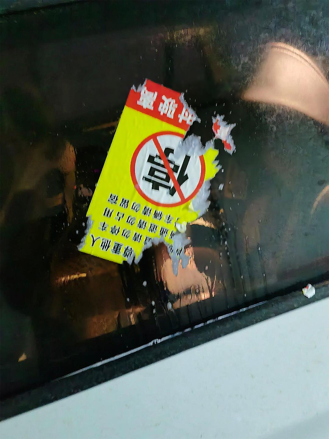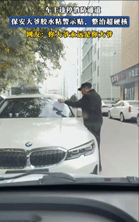 大部分物业的做法是粘贴一张提醒贴纸,粘贴也只会使用一小条双面胶,是比较容易去除的。而资料中的保安却使用了胶水,目测有可能是502这种强力胶水,这就会导致胶水很难去除。