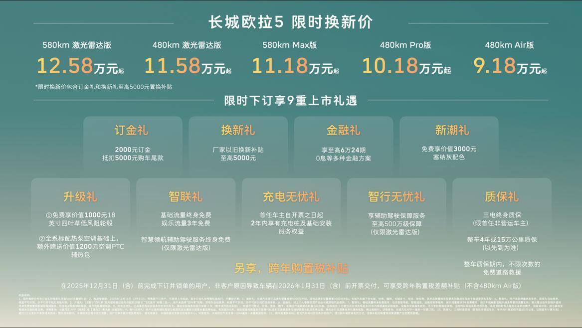 谁懂啊家人们!当代年轻人选车真的太难了 —— 想要颜值吸睛不撞款,想要智能贴心不鸡肋,想要安全靠谱不踩坑,关键预算还得友好!直到今晚长城欧拉 5 正式上市,我才发现原来「鱼和熊掌可以兼得」!这款以全球品质定义「年轻人的严选车」,限时换新价 9.18 万起,还带着 9 重上市好礼和跨年购置税补贴,直接把诚意拉满,难怪一亮相就刷爆社交圈!