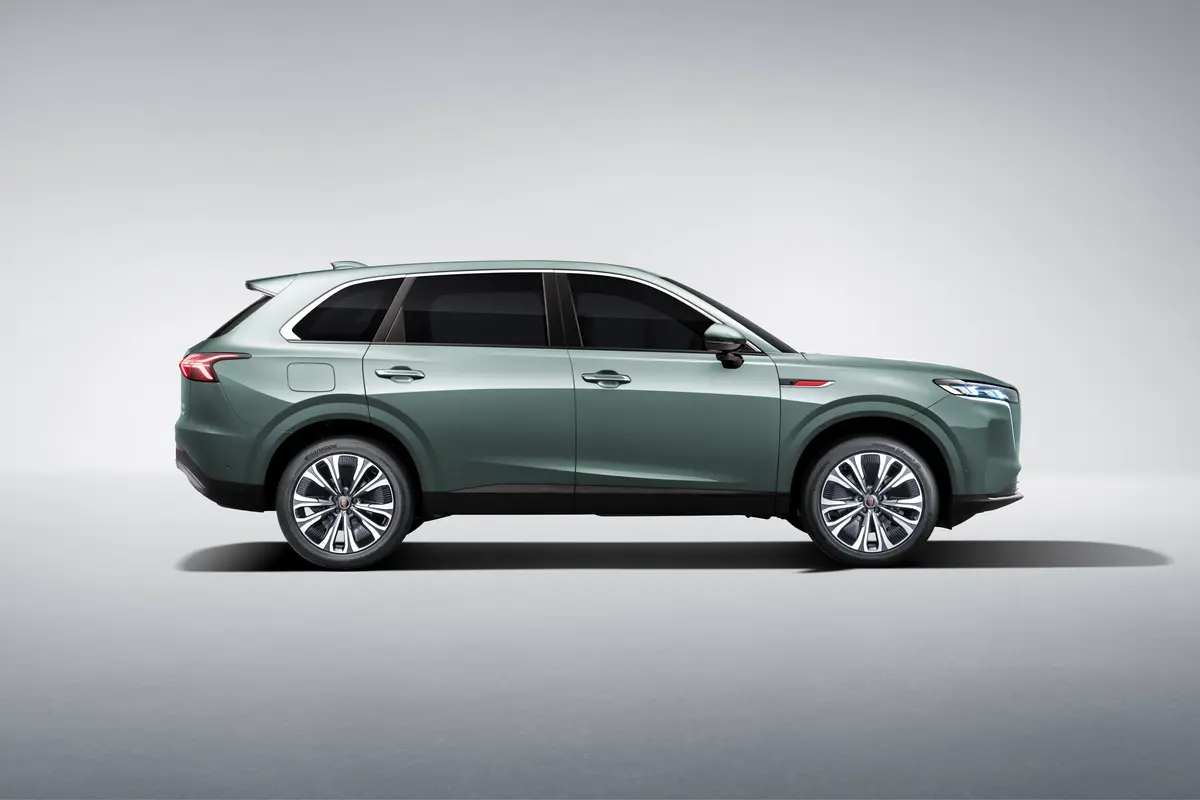 4925mm车长、2925mm轴距,这样的尺寸放在一台SUV身上更多则是舒展;配合上上下分段式车身筋线以及微微下溜的车顶弧线,充满力量感的同时也多了些优雅之气;同时车身前翼子板处同样搭配红旗品牌标志性的红色标识,辨识度颇高。