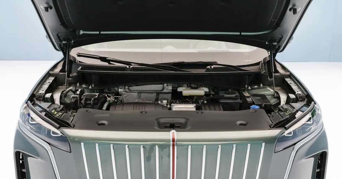 新车依旧采用红旗品牌家族式设计风格,大尺寸矩形格栅内部采用纵置镀铬饰条进行装饰,不过此次新车格栅采用封闭式设计,同时也取消了此前车型上所采用的分体式灯组,换装一体式头灯设计,并且头灯下方还搭配两条“L型”行车灯带,中央红旗品牌标志性的红色灯带延伸至引擎盖上方,气场真的不用多说。