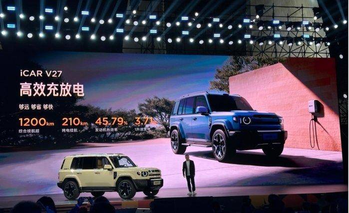 动力方面,iCAR V27采用1.5T发动机与电动机组成的增程系统,发动机最大功率105千瓦,提供后驱及四驱可选。其中四驱版本综合输出功率预计可达335千瓦,CLTC纯电续航里程为200公里,在满油满电状态下,综合续航里程或将超过1000公里。